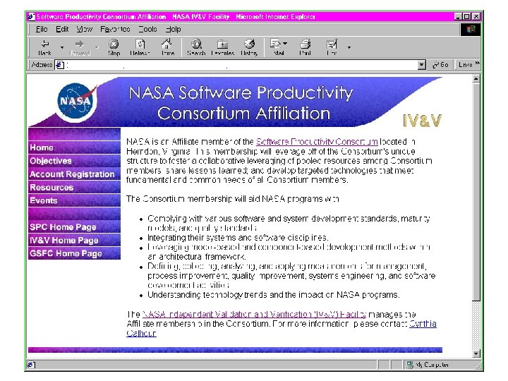 Web Sites • Visit the following web sites for more information on the SPC or the NASA SPC Affiliation Membership • Software Productivity Consortium http: //www. software. org NASA Point of Contact: Mike Egnotovich - egnotovi@software. org • NASA SPC Affiliation Membership http: //spc. ivv. nasa. gov SPC Point of Contact: Robert Ling - rling@ems. jsc, nasa. gov 11