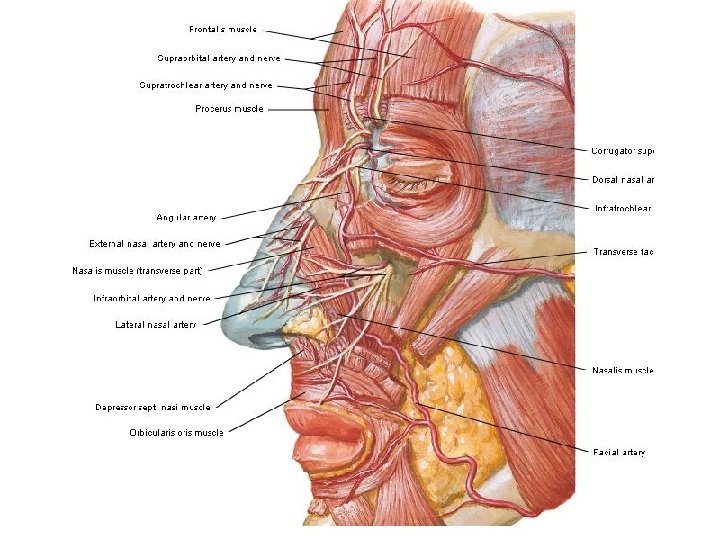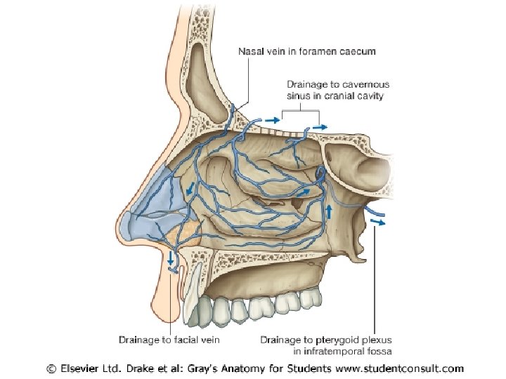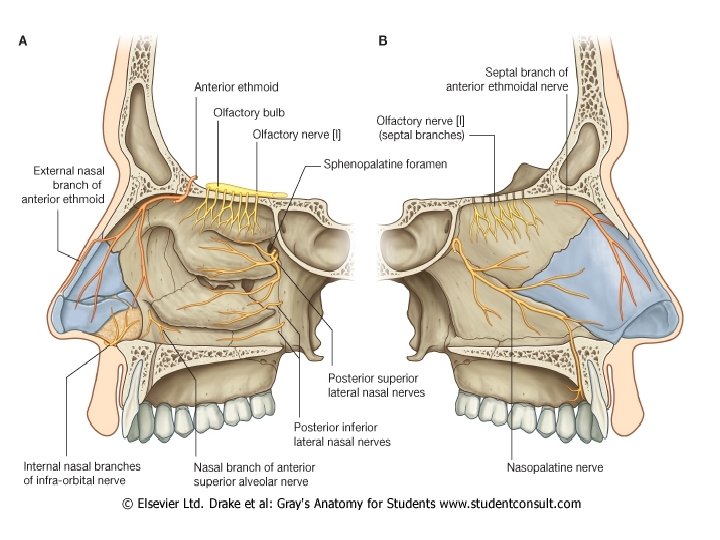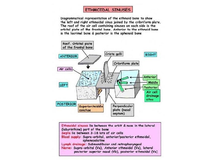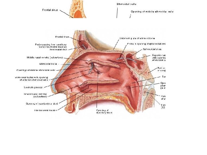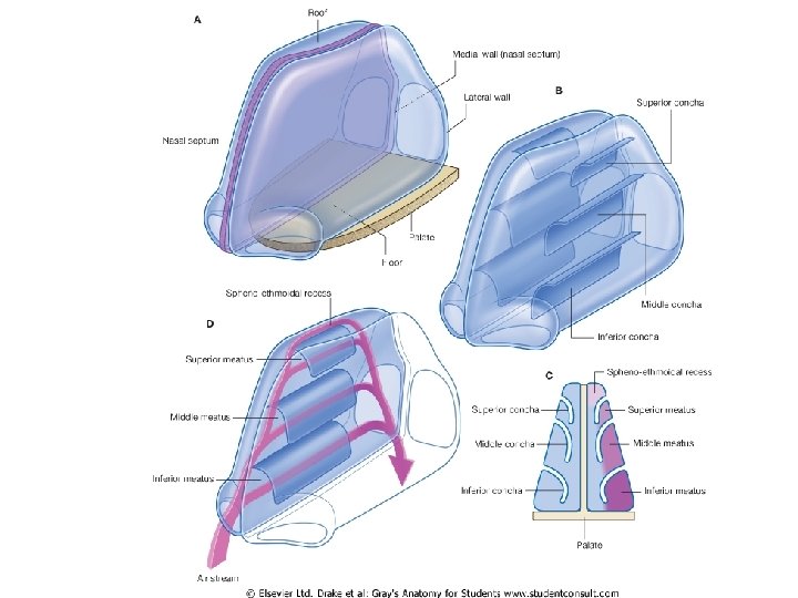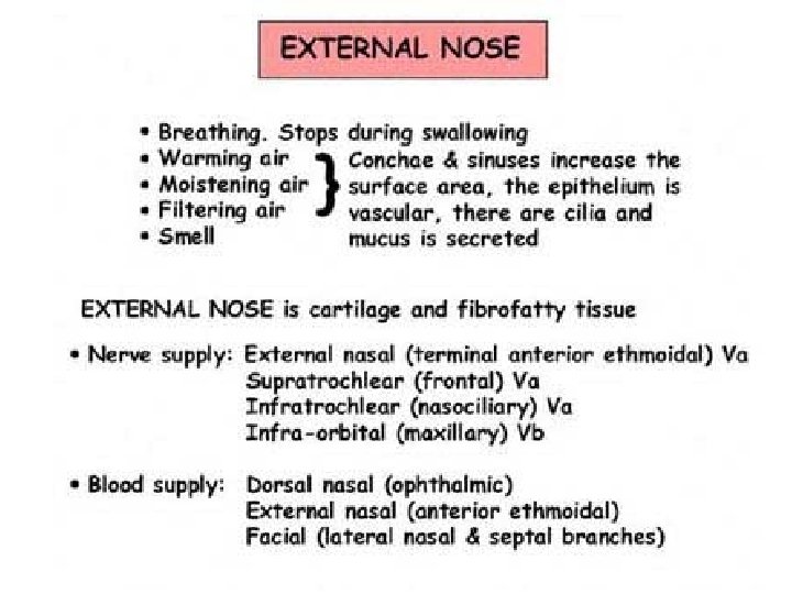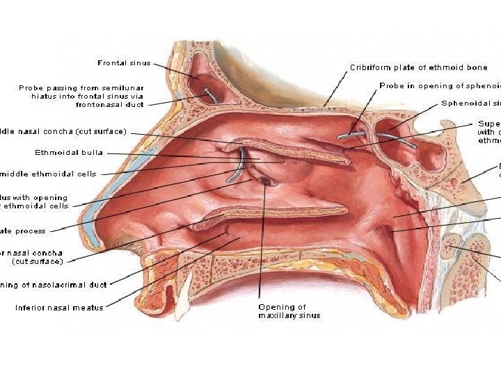 Nasal Cavity and Parnasal sinuses Nose Rhino Rhino Slides: 71 Download presentation Nasal Cavity and Parnasal sinuses Nose = Rhino = ﺩﻣﺎﻍ = ﺑیﻨی Rhino 200 Times in your life? ? Surface Anatomy External Nose Nasal cavity Nostriles (nares) Choana Roof: body of the sphenoid, cribriform plate of the ethmoid, frontal bone, nasal bones, nasal cartilages Floor: maxilla, palatine Medial wall: nasal septum Lateral walls: contain sup. , middle & inf. Nasal conchae. Nasala Cavity Walls Nasal Cavity Mucose And Areas Trigeminal nerve Ophthalmic (V 1) Nerve Maxillary (V 2) Nerve Epistaxis: -trauma hypertension inflammation Nasal deformity Meningitis CSF Rhinorrhea Paranasal Sinuses Maxillary sinus Maxillary (V 2) Nerve Frontal sinus Sphenoid sinus Ethmoidal sinusitis Nasal meatus • Sphenoethmoidal recess: sphenoidal sinus • Sup. Meatus: post. Ethmoidal sinuses • Middle meatus: -Bulla ethmoidalis← middle ethmoidal air sinuses Hiatus semilunaris← maxillary sinus, infundibulum Frontal sinus, ant. Ethmoidal air sinuses • Inf. Meatus ← nasolacrimal canal