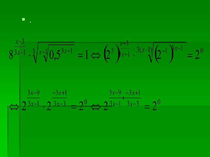§ Metodička obrada § Operacije sa stepenima i korijenima , dovođenja stepena na istu bazu § Dovođenja date jednačine na oblik § Rješavanje kvadratne jednačine vodeći računa da dobijeno rješenje nije 1 ili 1/3.