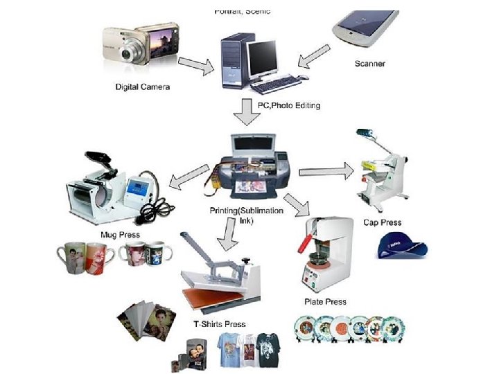 Sublimacijski pisači Primjena: tisak na tekstil, gotove majce ili kao tisak na tranfer (indirektni prijenos) s folije na proizvod čaše, šalice, ukrasne podloge Primjena kod fotopisača; tisak na posebno oslojene foto papire. Princip : Direktni tisak - DTG (direct to garment)direktni tisak na majce ili tekstil. https: //youtu. be/Fo 4 Od. HHFq. IE? t=89 Indirektni tisak - tisak na specijalizirane folije koje prihvaćaju tintu i prenose na različite podloge; maskice za mobitel, šalice… https: //youtu. be/zl 7 PNMHHXUM? t=66