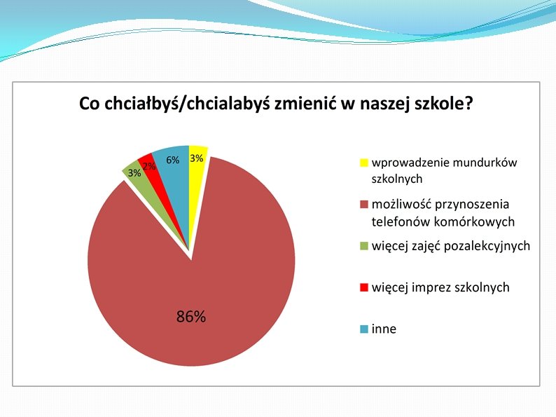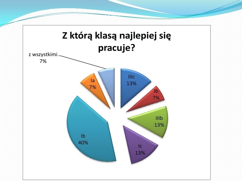 �Ułożyliśmy pytania, przygotowaliśmy i przeprowadziliśmy ankiety, zliczyliśmy głosy, a następnie korzystając z programu Excel przedstawiliśmy zebrane dane w postaci diagramów procentowych. �A oto wyniki naszej pracy �Wnioski wyciągnijcie sami