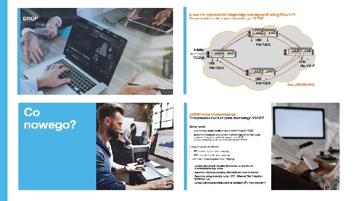 Wnioski Elastyczność i łatwość zmian w konfiguracji usługi: • możliwość realizacji i modyfikacji portu (VLAN) nawet w 1 DR Protekcja w sieci Realizacja wielu usług na jednym porcie z możliwością dostępu do dowolnej platformy (TPIX, EPIX, PLIX), Internetu, innego dostawcy lub własnej lokalizacji: • Back-up zapewniający ciągłość dostępu do wrażliwych usług