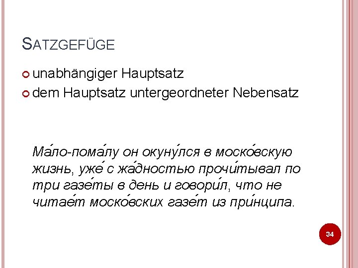 INHALT Satzgefüge � Satzgefüge mit einem Objektsatz � Satzgefüge mit einem Subjektsatz � Satzgefüge mit einem Prädikatsatz � Satzgefüge mit Adverbialsätzen Literatur 33