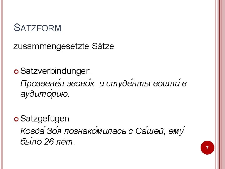 Nataliya Melnychenko (Graz) E-mail : nataliya. melnychenko@edu. uni-graz. at Mtr. Nr. 0910647 Institut für Slawistik der Karl-Franzens-Universität Graz SE 515. 163 Der russische Satz LV-Leiter: Branko Tošović WS 2012/13 DER ZUSAMMENGESETZTE SATZ СЛОЖНОЕ ПРЕДЛОЖЕНИЕ TEIL 2
