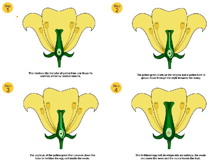Fertilisation Pollen grain Stigma Style Pollen tube Nucleus Ovary Ovule