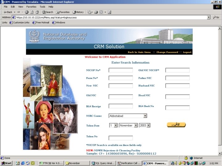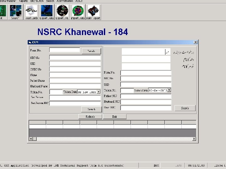 NADRA Swift Registration Centre (NSRC) • The Swift registration centers (NSRC's) Concept – – One-stop-shop, Designed to eliminate inaccuracy in the re-issuing of the ID cards By minimizing human intervention in handling NIC forms as seen in the past experience. The NSRC concept is to provide superior service to the citizens of Pakistan, and to introduce a corporate culture in the public service environment, trying to break free from the existing shackles of corruption, unprofessionalism, and red tapeism