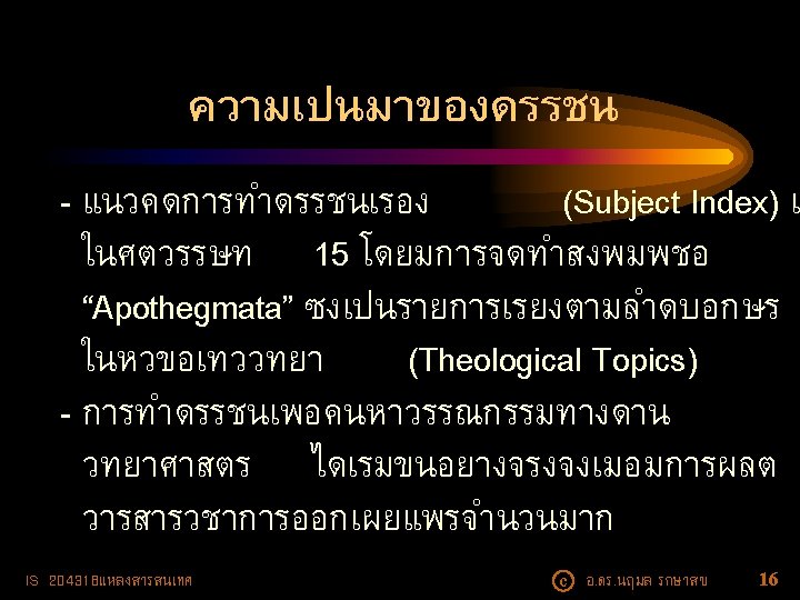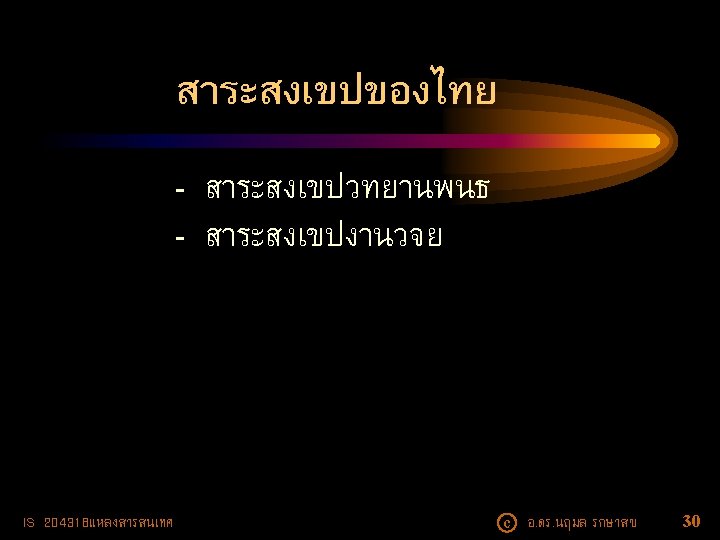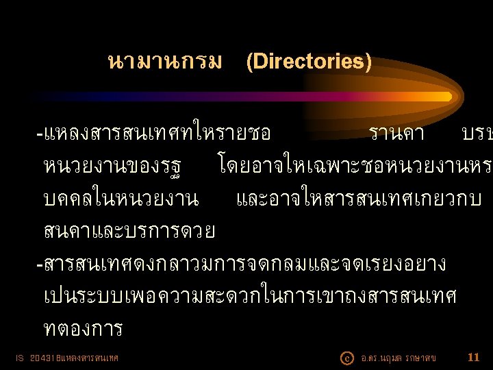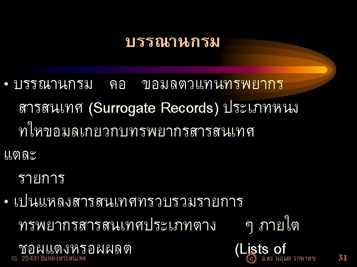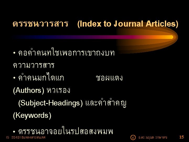 ตวอยางนามานกรม • National Directory of Nonprofit Organizations (NDNO) -- e. Directory • International Research Centers Directory (IRCD) -e. Directory • Physics and Astronomy Directory (https: //www. physastro. iastate. edu/directory) IS 204318แหลงสารสนเทศ c อ. ดร. นฤมล รกษาสข 13