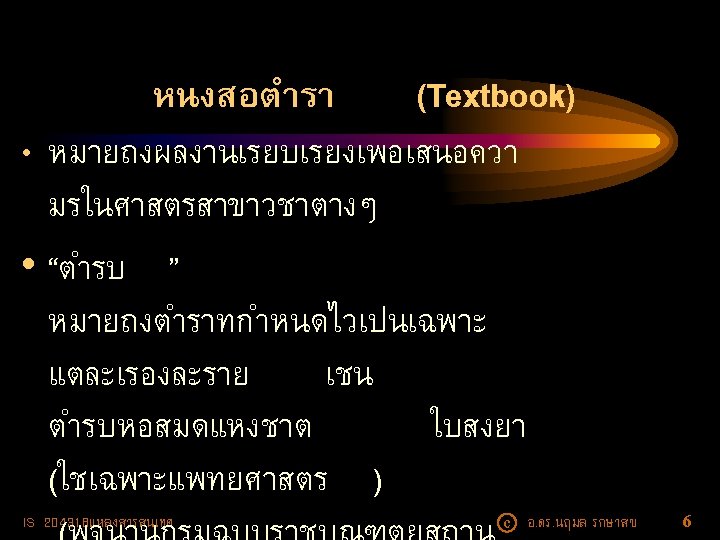 • Turabian 5 Mitchell, Terence R. , and James R. Larson, Jr. People in Organizations : An Introduction to Organizational Behavior. 3 d ed. New York : Mc. Graw-Hill, 1987. IS 204318แหลงสารสนเทศ c อ. ดร. นฤมล รกษาสข 39