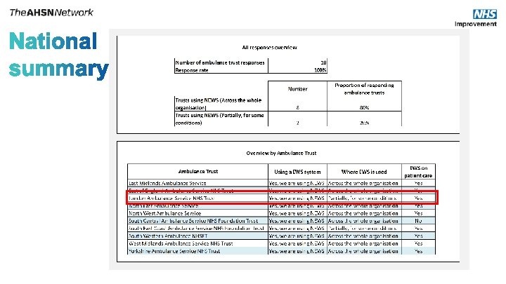 National Early Warning Scores: National Ambulance Survey Headline Findings Health Innovation Network April 2018