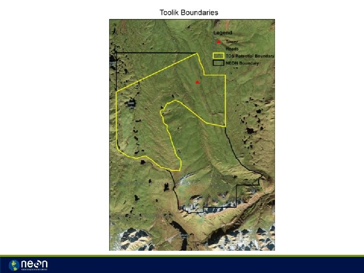 Infrastructure Requirements • Lab space – 800 to 1, 000 square feet – Higher level of on-site processing • Lodging (Construction) – NEON personnel and contractors – Site survey and geotech work – Feb/Mar 2013 – Ground water wells – Feb/Mar 2015 • Lodging (Operations) – peak numbers up to 20 – Crews rotating from Fairbanks – Full time and seasonal techs • Garage space (Vehicles) – truck, boat and snow mobile • Comm at Lake site – possible to tap into WIFI? – Aquatic band width requirement (Lake Site) ~45 Kb/s