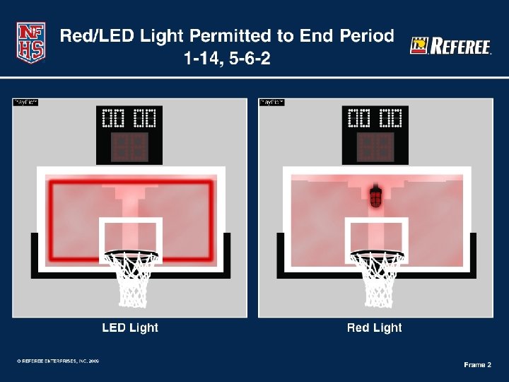 Red/LED Light Permitted to End Quarter/Extra Period (1 -14; 5 -6 -2) § Red/LED lights give a visual reference to officials and may assist with end-of-period situations. § Officials must determine upon arrival or during pregame responsibilities if the facility has functioning red/LED lights.