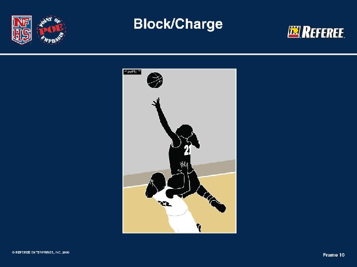 Block/Charge § One of the most difficult plays for coaches to teach and officials to adjudicate. § Knowing and understanding the rules regarding legal guarding position are critical in coaching and officiating this play.