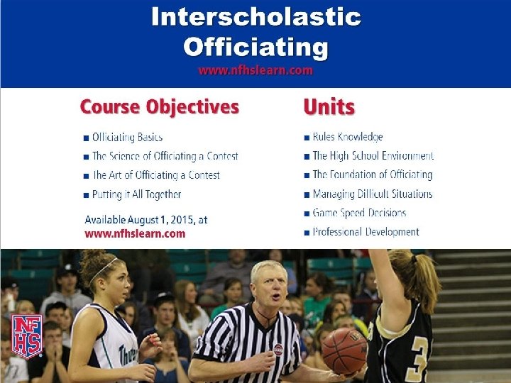 NFHS Officials Association Central Hub www. nfhs. arbitersports. com Contains • Sport information • Rules library • Searchable rules book and case book • Video content on officiating sport, competition situations and interpretations