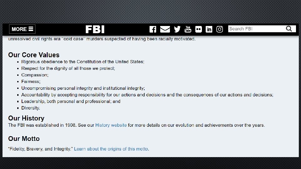WHO ARE WE? • WHAT DO WE DO? (AGENCY MISSION/VISION/GOALS/PURPOSE) • WHAT DO WE VALUE AND BELIEVE? • HOW DO WE DO OUR WORK CONSISTENT WITH OUR VALUES AND BELIEFS?