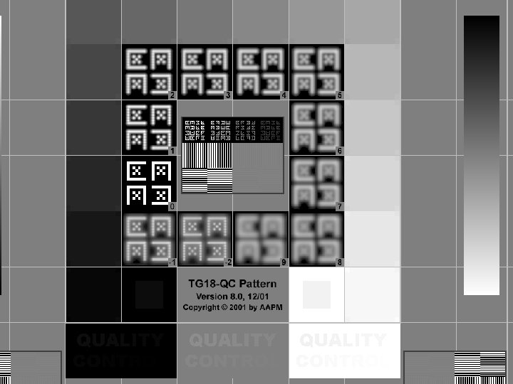 Display Device QA Guidance • National – – – AAPM TG 18 (USA) DIN V 6868 -57 (Germany) IPEM 91 (UK) RCR (UK) Connecting for Health (England) • International – – – SMPTE VESA FPDM ISO 9241 and 13406 DICOM GSDF and GSPS IEC 61223 -3 -6