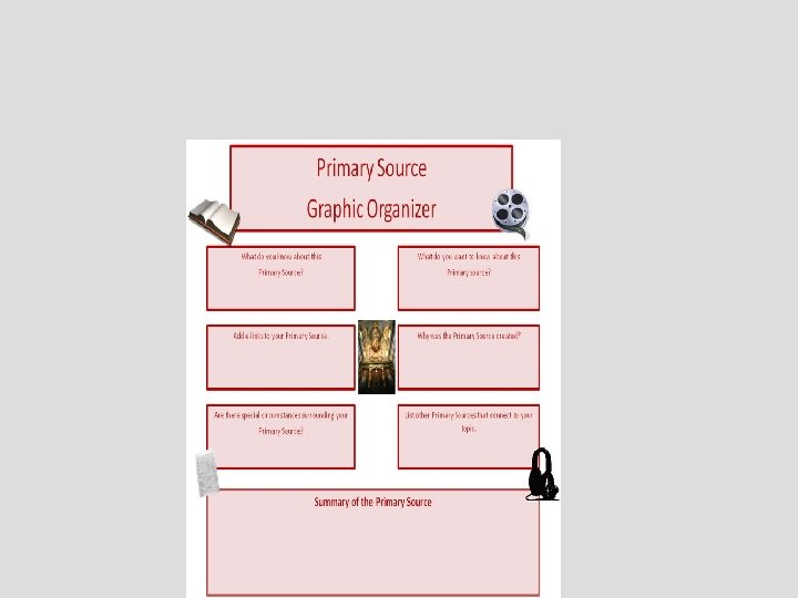 Primary Sources • Primary Source Document analysis • Fill in the graphic organizer ( see attached)
