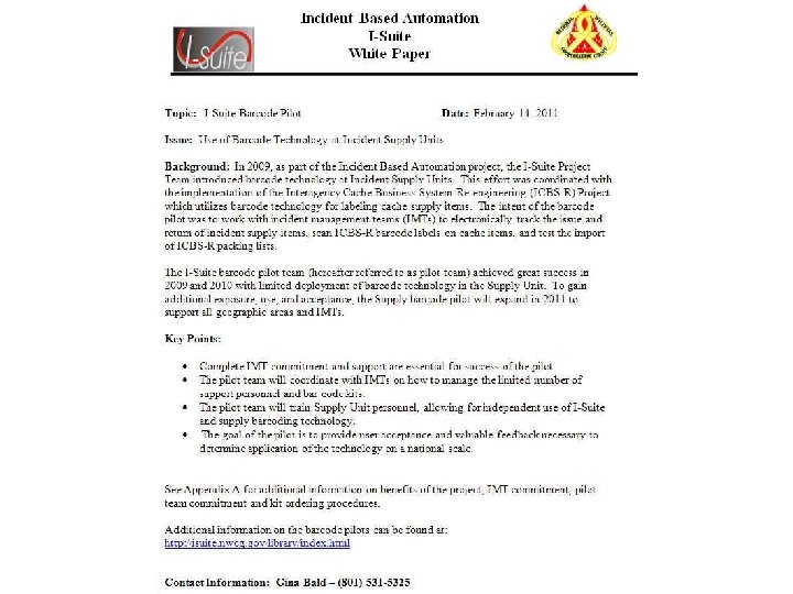 Feedback Processes • Product Quality Deficiency Report (QDR) is available from GSA, use the e. Resolve or Email NCSCcustomer. service@gsa. gov. – Note “Fire Suppression item” on the subject line. – Detailed process and link from NISC webpage • Important to let the servicing cache know of a failure of supply item. – GSA contracts – T & D specifications – Avoid “outside the process” communication flow – Important when a Safenet is going to be generated • Participate in the review/investigation