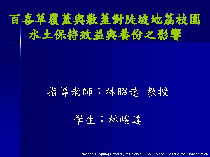 謝謝聆聽 National Pingtung Unversity of Science & Technology Soil & Water Conservation