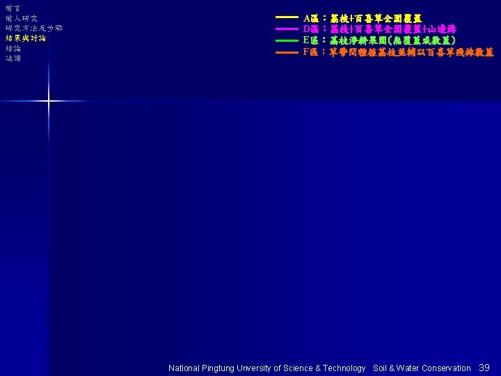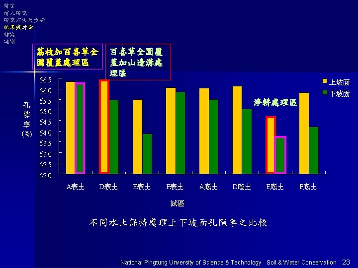 前言 前人研究 研究方法及步驟 結果與討論 結論 誌謝 結果與討論 National Pingtung Unversity of Science & Technology Soil & Water Conservation 20
