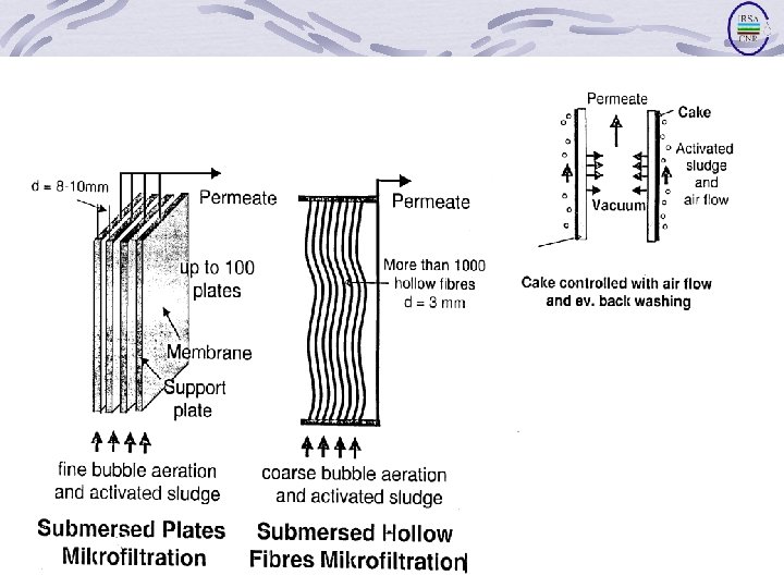 Membrane sommerse P = -0, 2 -0, 6 Bar Consumo energetico 0, 2 -0, 4 k. Wh/m 3 eff. Carichi più bassi