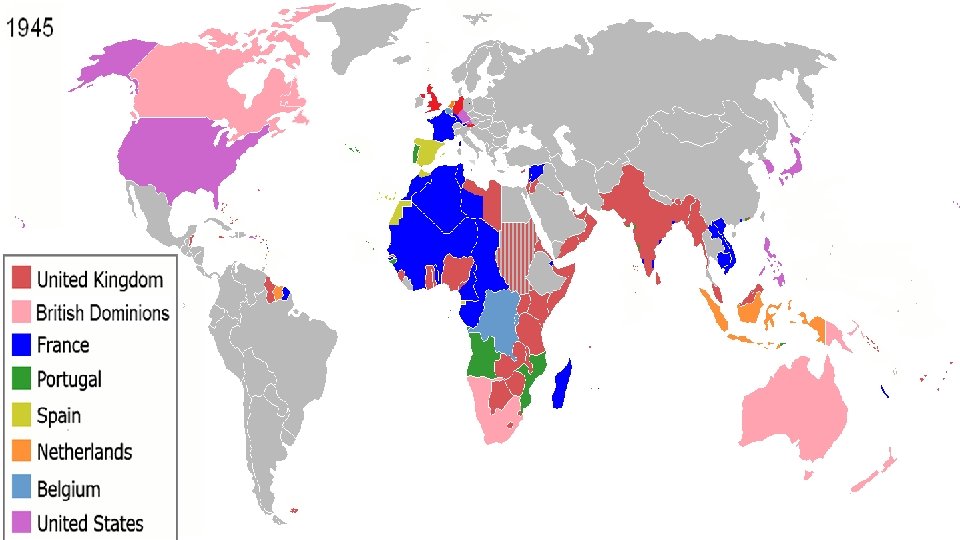 NATIONALISM AND DECOLONIZATION • WWII ends in 1945 • Victory in Europe (VE Day)- May • Victory in Japan (VJ Day)- August • Total war drained the resources of the European powers • Atlantic Charter of 1941 • US & Great Britain • Recognized the right of all people to choose the form of government under which they lived • FDR & Soviets condemned colonization