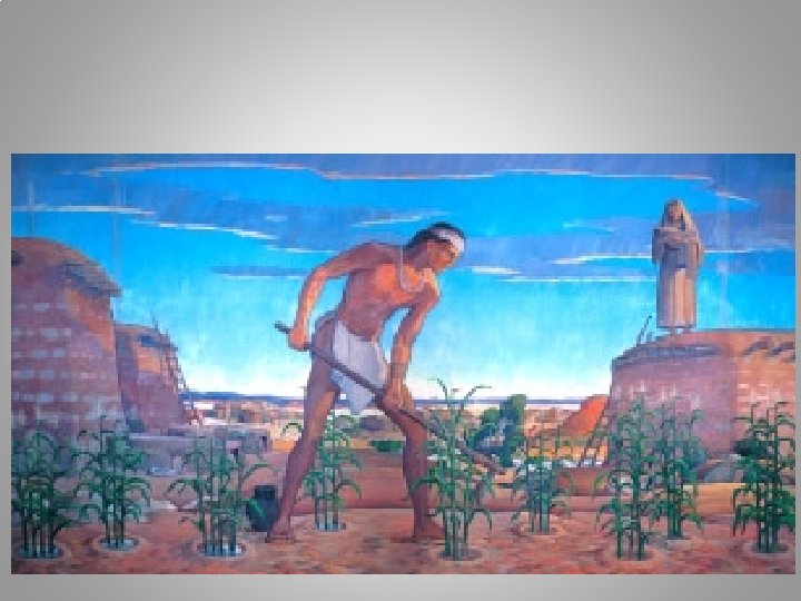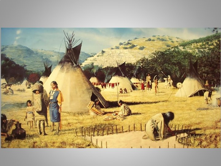 Caddo • Farmers in eastern Texas • Built permanent villages and practiced crop rotation • Grew beans, corn, squash, sunflower seeds and tobacco • Women did all the farming, the men cleared the fields and made farm tools • Organized themselves into three confederacies that shared common language and were allies or friends • Were a matrilineal society- traced through the mothers side • Women made decisions for family. 10 to 20 people lived in the household