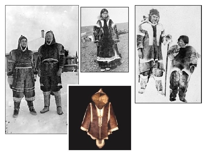 Traditional Inuit dress for both men and women is made of skins and furs and consists of watertight boots, double-layer trousers, and the parka (a tight-fitting double-layer pullover jacket with a hood). In the past, sinew thread and bone needles were used to sew the skins into warm and watertight clothing.