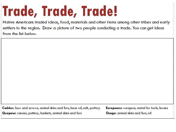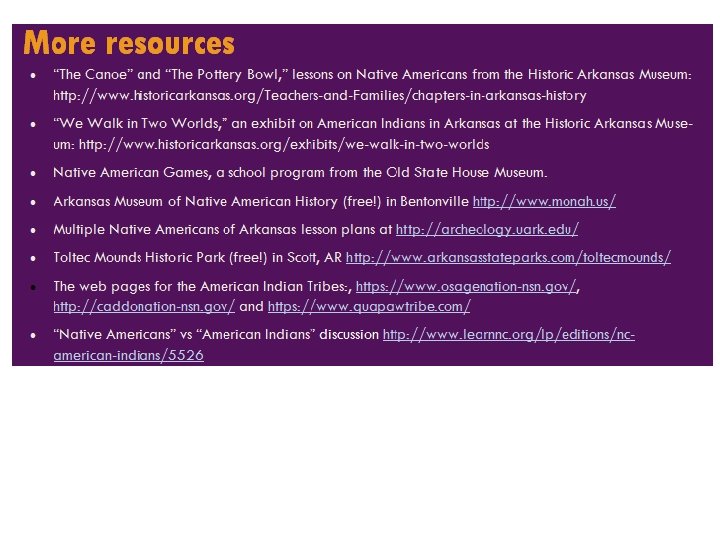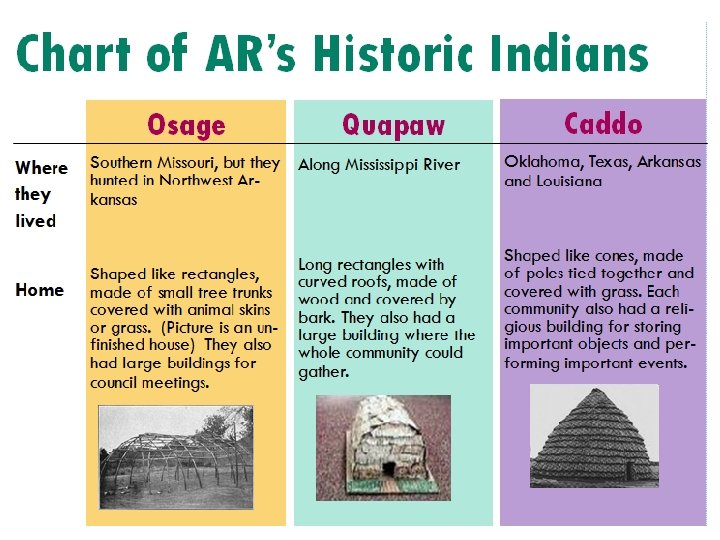 Photos from modern tribes Quapaw: https: //www. quapawtribe. com/Gallery. aspx Caddo: http: //caddonation-nsn. gov/culture-club/ Osage: https: //www. osagenation-nsn. gov/multimedia/