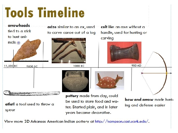 Craft: Pottery was an important part of Caddo and Quapaw culture. As Native Americans’ skills advanced, they began to make pots that could not only hold items, but were also great works of art. Many pots had swirled designs or were shaped like people and animals, what were known as effigy pots. Use Play-Doh, modeling clay or Crayola air-dry clay to make a pot designed like the Native Find more craft ideas at http: //archeology. uark. edu/learn-discover/classroom. Americans of Arkansas might