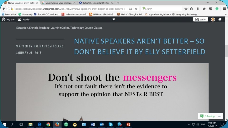 NATIVE ENGLISH TEACHER OR NON- NATIVE ENGLISH TEACHER? This is my question. Halina Ostankowicz- Bazan 8/2/2017