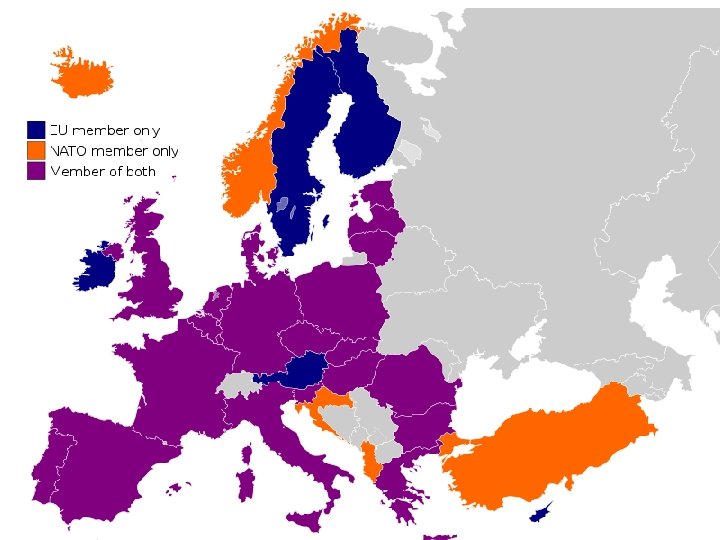NATO Základní údaje Počet obyvatel……. 8093 896 209 Rozloha…………. . . 24 574 539 km 2 Počet vojáků………. . 4 077 029 Výdaje na obranu (Evropské země)…. 1, 67%HDP Výdaje na obranu (USA, Kanada)……. 3, 76%HDP