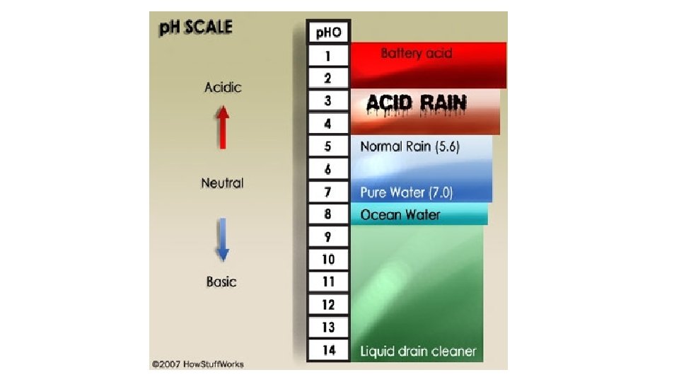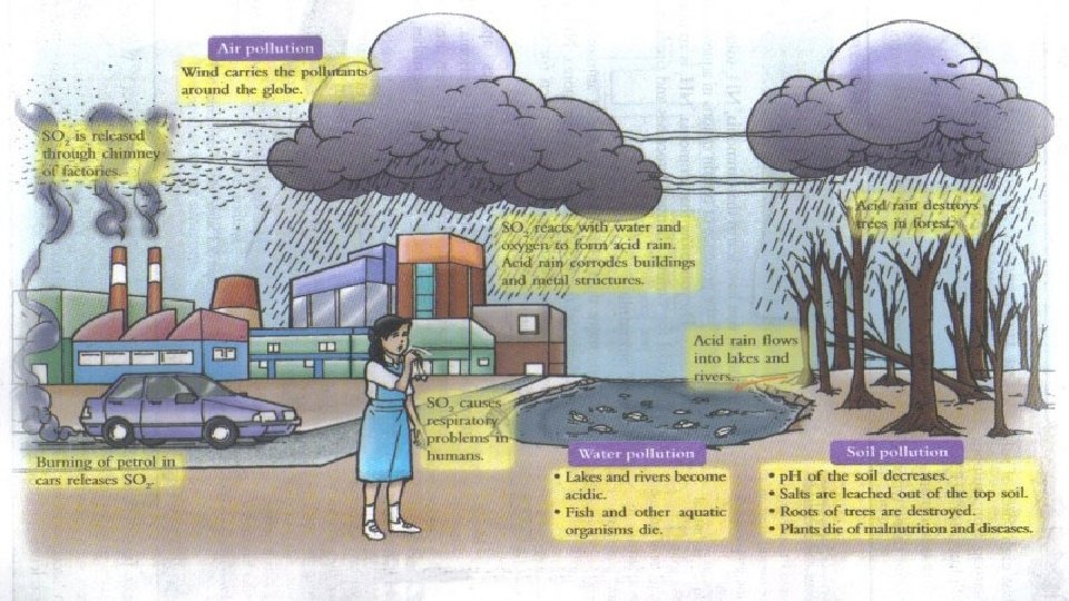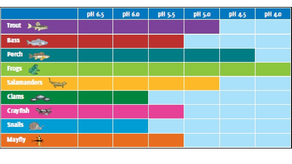 Effects of Acid Rain • Effect on Aquatic Environment – Acid rain either falls directly on aquatic bodies or gets run off the forests, roads and fields to flow into streams, rivers and lakes. • The aquatic plants and animals need a particular p. H level of about 4. 8 to survive. If the p. H level falls below that the conditions become hostile for the survival of aquatic life.