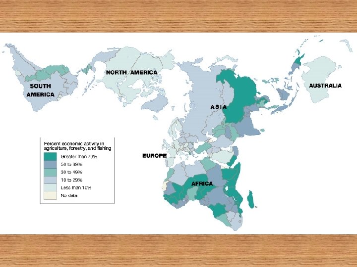 Economic geography • Primary economic activity – Closest contact with natural resources – Generally, lowest income • Secondary: value added (manufacturing) • Tertiary: services for primary or secondary • Quaternary: information-based services