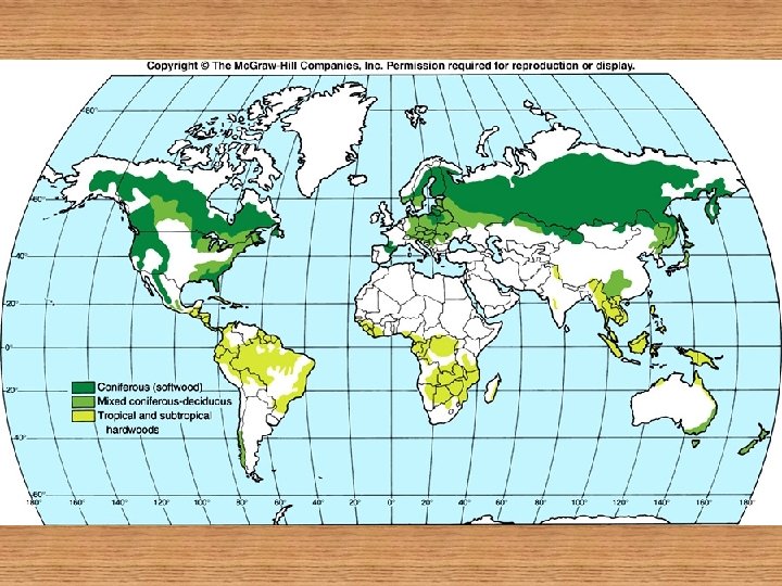 Forestry • • Commercial use or fuelwood Coniferous (softwood) for paper, lumber Deciduous (hardwood) for furniture, etc. Tropical hardwood for fuelwood, furniture – And clearing land
