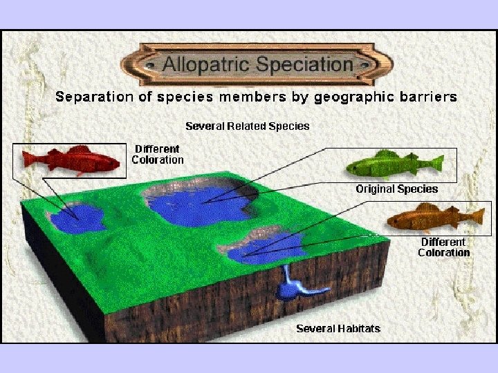 Geographic Isolation • Geographic isolation • https: //www. youtube. com/ occurs whenever a watch? v=kc. Sd 4 MUQU 2 o physical barrier divides a population Isolated habitat fragments are similar to islands in the way in which the species living there are effected.