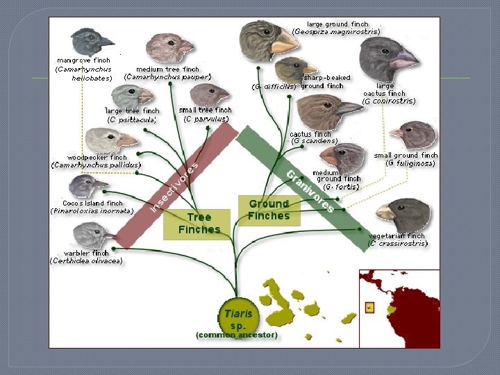 Darwin’s Findings �The Galapagos Islands – The Finches • Darwin observed and collected many birds that were different on each island • He discovered that these birds were all finches • He noticed that each type was well suited to its own specific environment