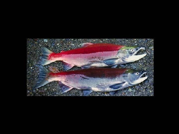 Reproductive Isolation in Sockeye Salmon • Between ancestral river and an introduced lake population in less than 13 generations (~70 years) • Lake population is genetically distinct despite some gene flow • Lake males have deep bodies, immigrant males have shallower bodies for river swimming • Lake females are smaller than immigrant females; large size in river facilitates nest building • Lake body plans confer reproductive advantage Hendry et al. 2000 Science