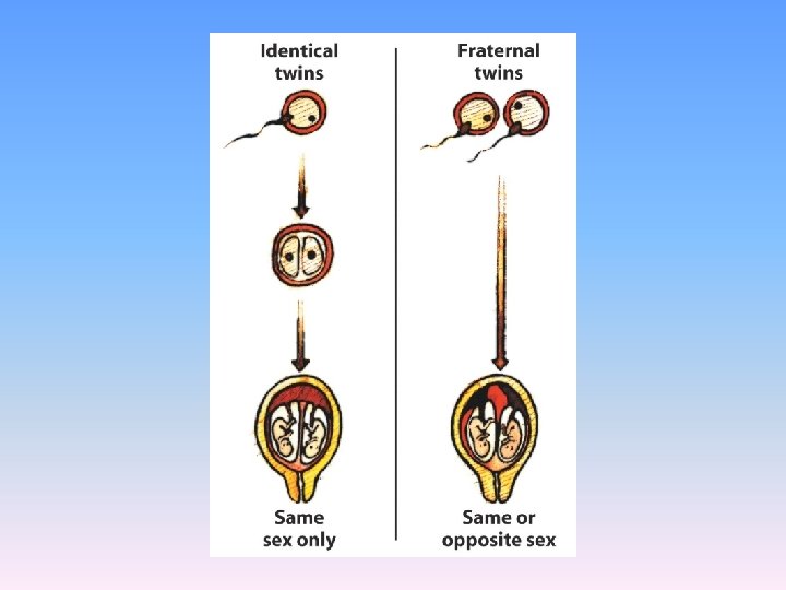 Fraternal Twins • Twins who developed from separate eggs • Genetically no different than other siblings • Called dizygotic twins