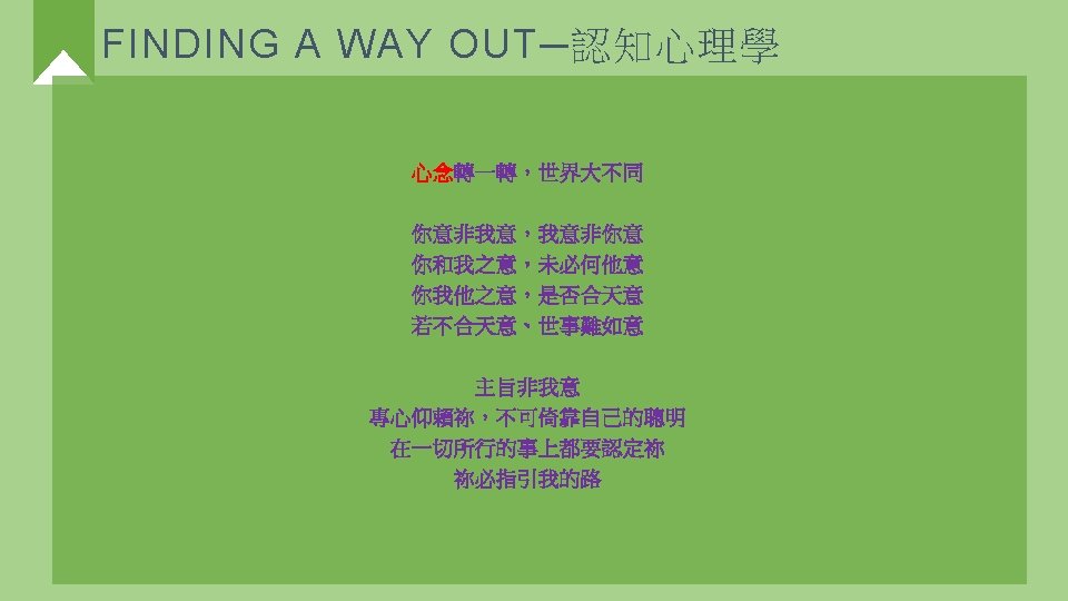 衝突狀況是一種學習 • 和而不同,勝過「同而不和」 “Well, I don’t agree with this but I accept it. ” • 覺察:See if you can locate along the Power Continuum the decision-making power in the groups, organizations or situations in which you're involved. Is your boss or supervisor a pure dictator? Is there a commission at your workplace that can suggest policy or listen to grievances? Are decisions in your family made by a single authority figure or a genuine consensus? • Understanding the prevailing decision-making dynamics is an important element in determining the most effective way in which to gather and utilize-information in your various environments, especially when you’re involved in an uncomfortable situation that could become one of the two things: a full-blown conflict or a harmonious working relationship.
