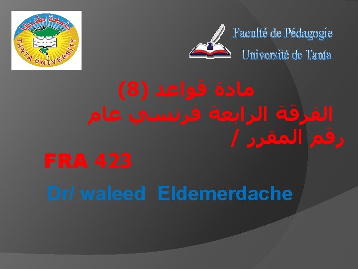 les pronoms¨les pronoms personnels sujets Pr. Pers. Sujet¨ les pronoms personnels compléments (Pr. Pers. Comp. ¨)les pronoms démonstratifs (celui-ci, ceux-là. . . ) (Pr Dém. ) ¨- les pronoms relatifs (qui, que, quoi, dont, où, lequel. . . ) (Pr Rel. ) ¨- les pronoms indéfinis (tout, chacun, les uns, les autres. . . ) Pr Ind. ¨· les verbes (V. )