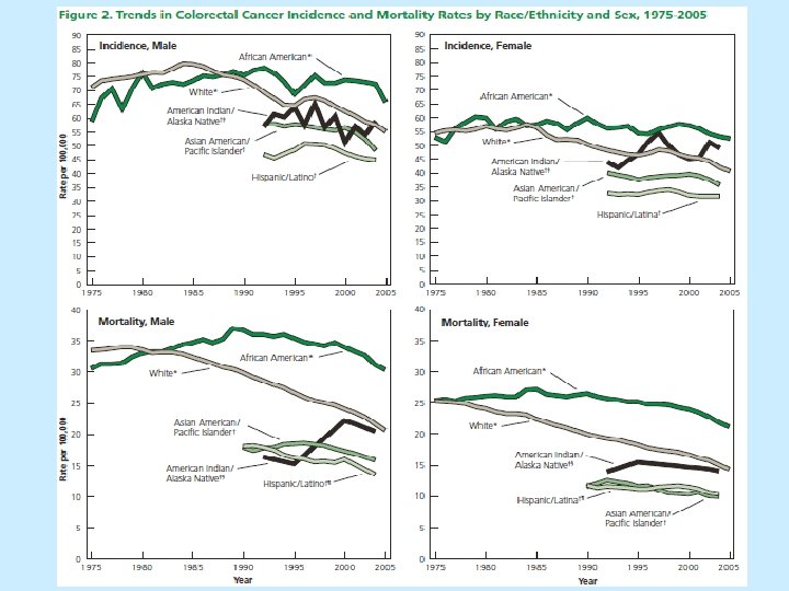 Causes of death contributing to the gap in life expectancy at birth among non-Hispanic blacks and whites, 2003 -2008. Life expectancy gap, years (%) Men Cause of death Women 2003 2008 Change Cardiovascular 1. 94 (29. 8) 1. 75 (32. 2) -0. 19 (17. 6) 1. 93 (41. 6) 1. 6 (43. 0) -0. 33 (35. 9) Cancers 0. 98 (15. 0) 0. 89 (16. 4) -0. 09 (8. 3) 0. 57 (12. 3) 0. 51 (13. 7) -0. 06 (6. 5) Communicable 0. 93 (14. 3) 0. 73 (13. 4) -0. 2 (18. 5) 0. 59 (12. 7) 0. 51 (13. 7) -0. 08 (8. 7) Other Chronic Disease 0. 54 (8. 3) 0. 42 (7. 7) -0. 12 (11. 1) 0. 43 (9. 3) 0. 29 (7. 8) -0. 14 (15. 2) Injuries 0. 91 (14) 0. 61 (11. 2) -0. 3 (27. 8) 0. 03 (0. 6) Infant mortality 0. 50 (7. 7) 0. 45 (8. 3) -0. 05 (4. 6) 0. 42 (9. 1) 0. 39 (10. 5) -0. 03 (3. 3) Residual 0. 72 (11) 0. 59 (10. 8) -0. 13 (12) 0. 67 (14. 4) 0. 54 (14. 5) -0. 13 (14. 1) 6. 52 (100) 5. 44 (100) -1. 08 (100) 4. 64 (100) 3. 72 (100) -0. 92 (100) Total -0. 12 (-3. 2) -0. 15 (16. 3)