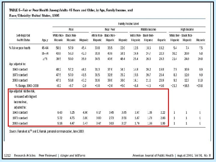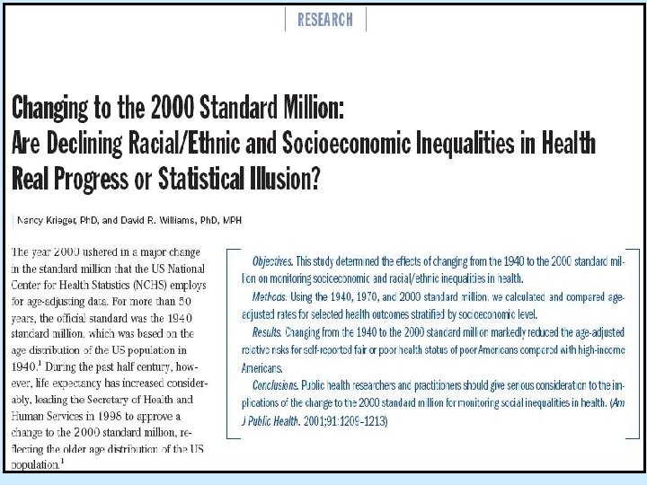 AN EXAMPLE: House JS, et al. Excess mortality among urban residents: how much, for whom, and why? Am J Public Health. 2000; 90(12): 1898 -904.