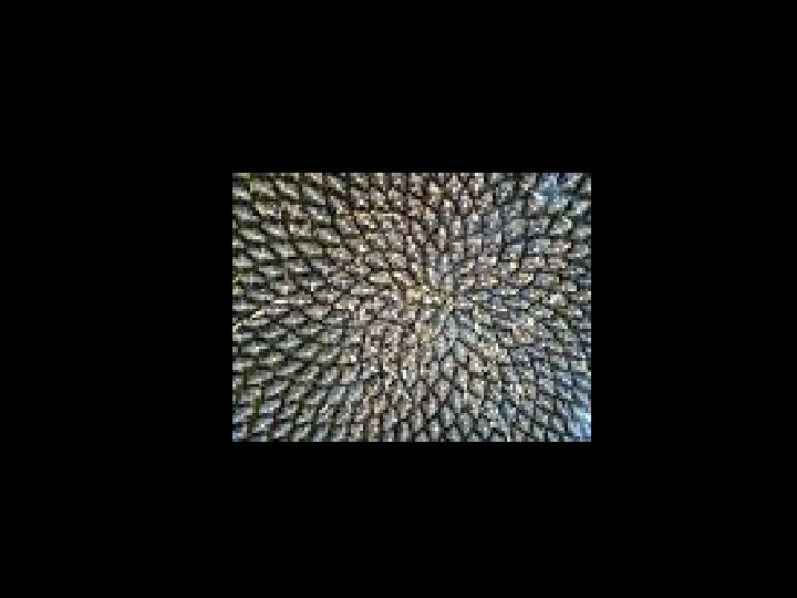 Vi plotter punktene i planet gitt ved Pn = (5+n 1/2)(cos n , sin n ) der n=1, 2, 3, . . , og der er vinkelen gitt av likningen 1 - 2 Denne vinkelen kalles den gyldne vinkel og er altså på ca. 222, 5 grader.
