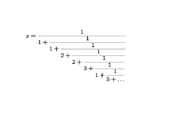 Kvint-problemet (3/2)n=2 m, eller (ln 3 -ln 2)/ ln 2 = m/n Kan uttrykke x = (ln 3 -ln 2) / ln 2 (tilnærmet lik 0, 5850) ved hjelp av kjedebrøk.