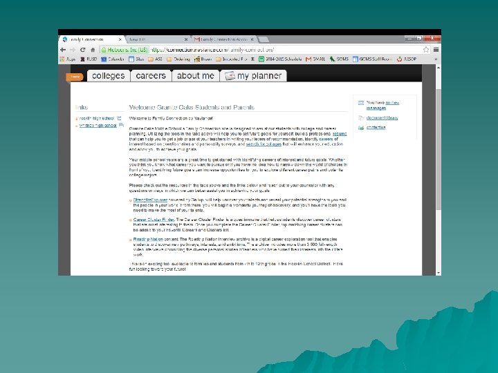 Log into Naviance at https: //connection. naviance. com/graniteoaks Your username is the same as your Rocklin USD Google account Your password is your Student ID.