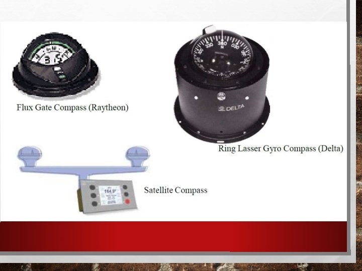 PEDOMAN ELEKTRONIK YANG DIKENAL YAITU: • 1. FLUX GATE COMPASS (FGC), DAN • 2. RING LASER GYRO-COMPASS (RLG). • 3. SATELLITE COMPASS