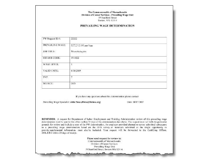 Why Now? Effective January 1, 2010 l Prevailing wage determinations (PWD) will be go to the Department of Labor’s (DOL) National Processing Center (NPC) l NEW l State prevailing wage Form ETA 9141 Workforce Agencies (SWA) will no longer be involved in PWD