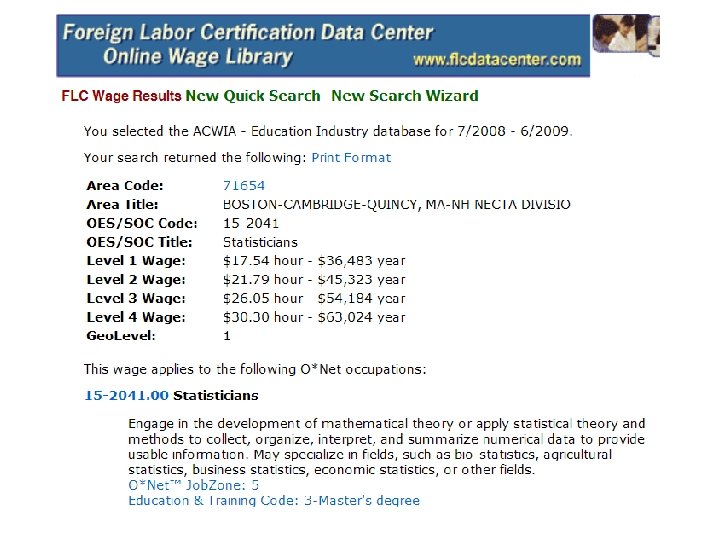 What it Means…Why it is Important SOC-O*NET l System of coding/classifying jobs by skills, knowledge and work activities. l For prevailing wage determinations (PWD) - provides the “quantitative parameters” to determine the appropriate wage level through the SVP and job zone standards.