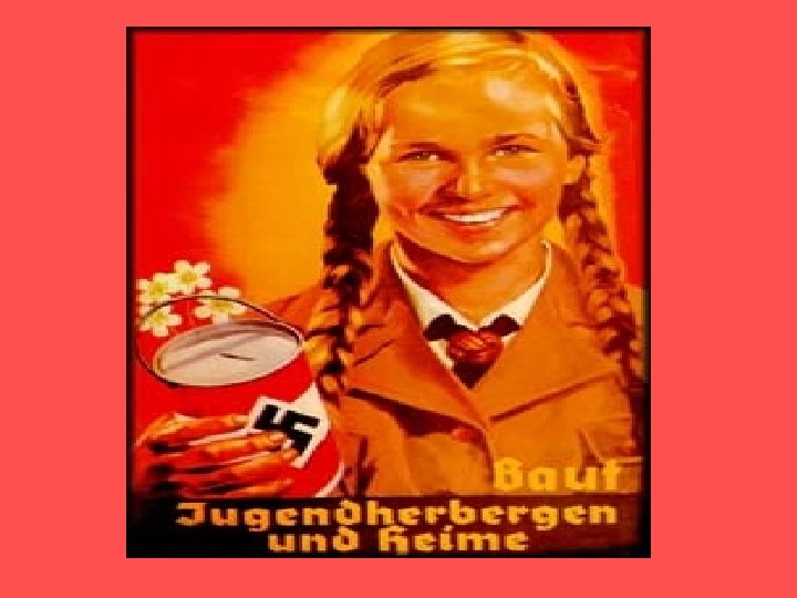 Nazi Propaganda: The Message and the means • • • Posters Radio Film Newspapers Meetings and Rallies Art and Literature • Hitler himself • Schools and Youth Movements