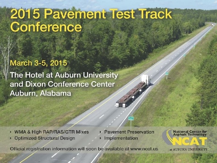 Higher ADT Off-Track Preservation 7¾” Asphalt Pavement 10” Aggregate Base NCAT Track • US-280 3 miles to east of Track • 17, 000 ADT, ≈9 year old surface • Westbound outside lane • ≥ MP 128. 0 to MP 132. 6 • Tenth mile sections • Repeat Lee Road 159 (±) • Add CCPRF, E, CIRF, E, HIR, etc. • High ABR thin overlays • Connection to Cracking Group. Le e. R oa d 2 53 oad R Lee 391